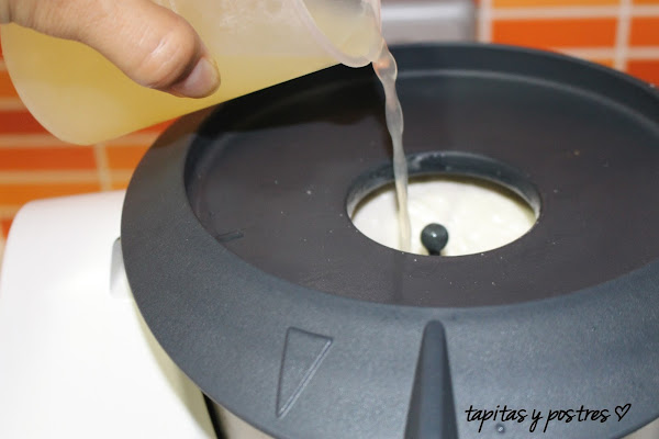 Y con la máquina en marcha, echamos el zumo de limón, que habremos colado antes.
