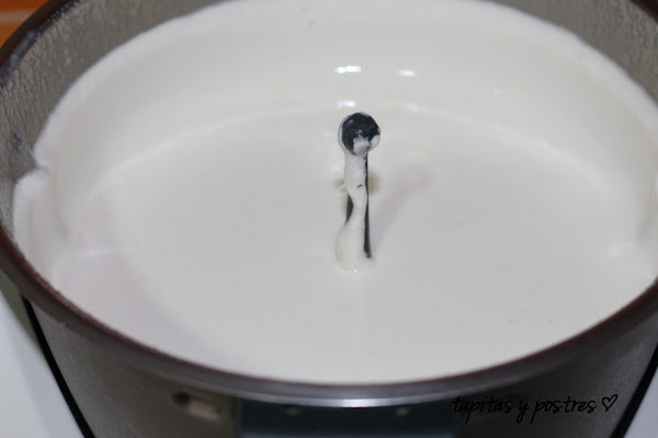 Primero pesamos la leche evaporada y la ponemos en un táper. La congelamos unas horas.