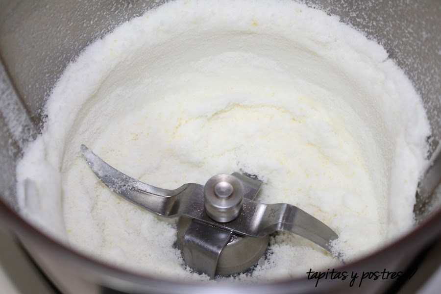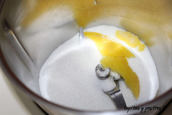 Con la batidora pulverizamos el azúcar con las pieles del limón. Reservamos.