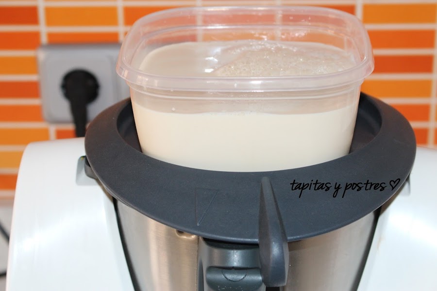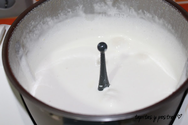 Cuando pasen los dos minutos, observaremos que la leche ha aumentado de tamaño. Programamos velocidad 3 y por el bocal, vamos añadiendo el zumo de limón despacito. Al acabar. Vertemos esta crema en un táper apto para el congelador y lo dejamos unas horas para que coja cuerpo.