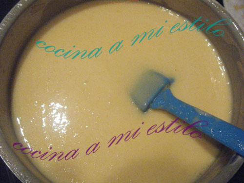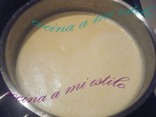 Añadir la 1º mezcla, a las yemas y llevar aebullicionDejar enfriar y meter el la heladera
