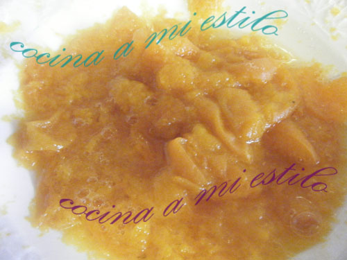 Calentar la nata (crema de leche) y laleche, añadirel albaricoque y triturar todo