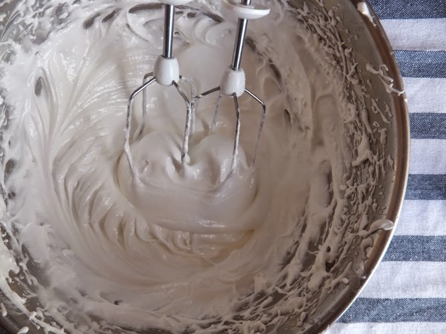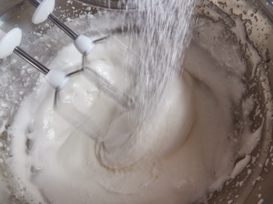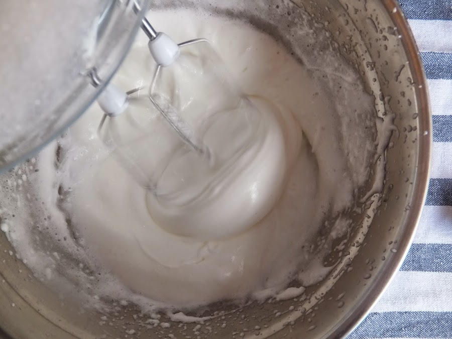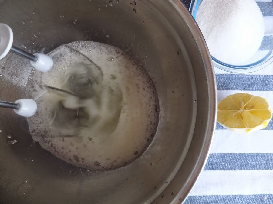 5. Monta las claras a punto de nieve con las gotas de limón y añade poco a poco el azúcar.