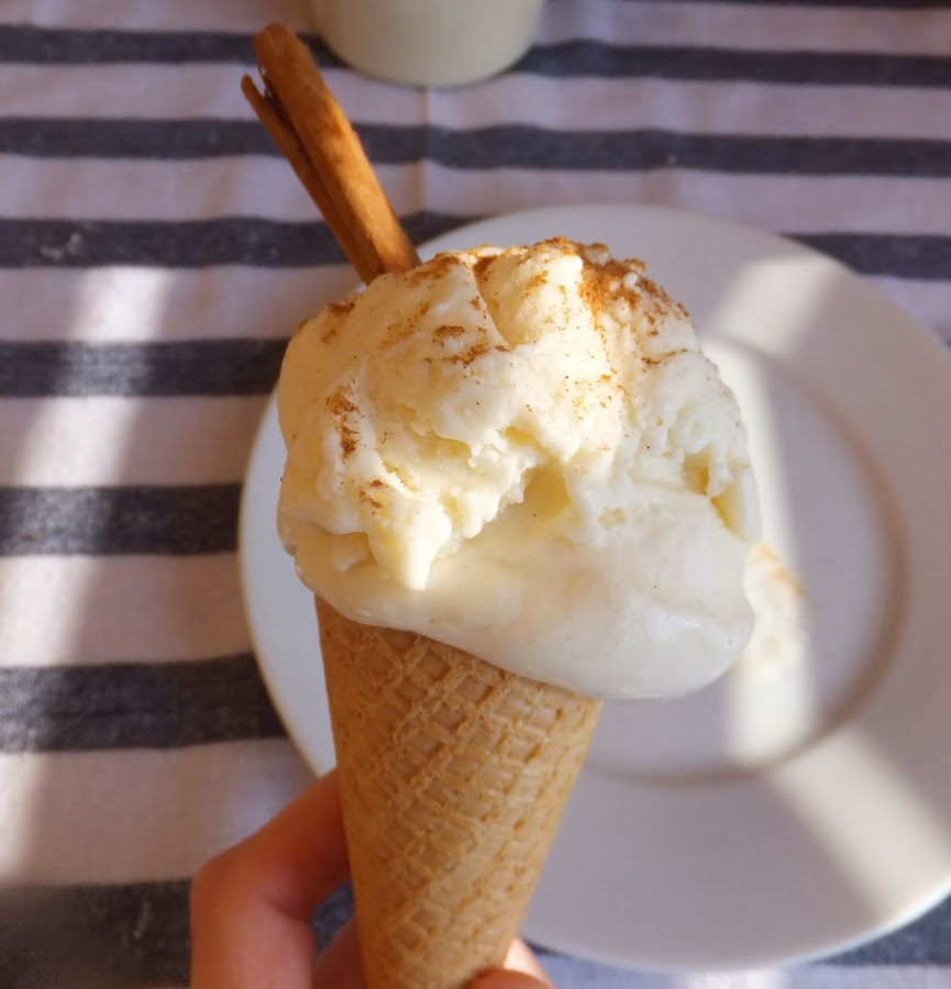 Una vez dominada la técnica del arroz con leche el siguiente paso es elevarlo al máximo nivel de exquisitez, lo que para mi equivale siempre a hacer helado. Y el helado de arroz con leche es un señor helado. La fusión de dos de los postres más reconfortantes de la historia y un ardid brillante para aquellos que quieran seguir comiendo helado en otoño sin sentir que están quebrantando alguna de ley de la naturaleza.