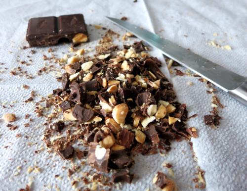 Con un cuchillo, raspa las onzas de chocolate hasta dejarlas bien picaditas.