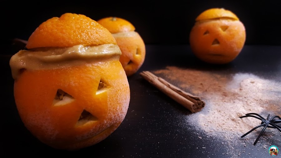 Por otra parte, halloween esta a la vuelta de la esquina, por eso he preparado esta receta fresca, y divertida que puedes hacer con tus hijos o nietos en casa: unas naranjas de halloween rellenas de este exquisito de helado de calabaza asada con zumo de naranjas y algunas especias. Son muy decorativas y nadie podra resisterse a ellas.