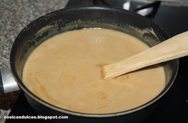 Pasamos la mezcla a un cazo y llevamos a fuego suave hasta que rompa a hervir.