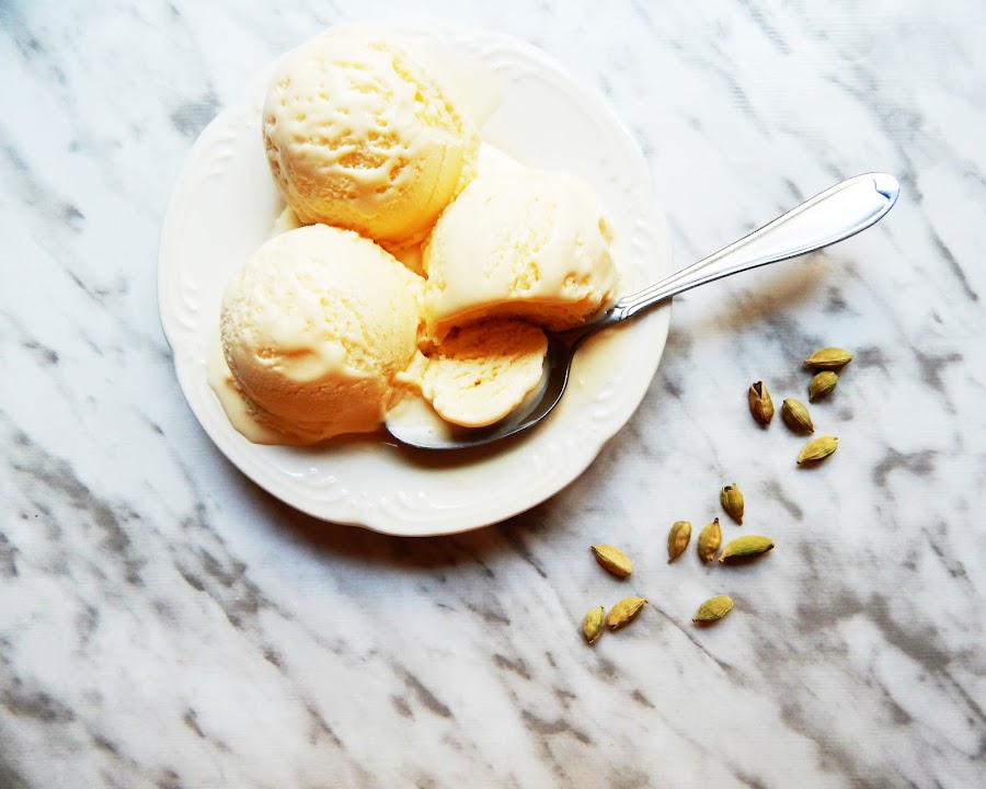 Desde que vi el helado de cardamomo en el libro me llamó mucha la atención, y por supuesto lo tenía que hacer. Resulto que el sabor que tiene es extremadamente delicioso. ¡se los prometo! Yo estaba que no me la creía, el sabor que le dan las vainas de cardamomo al helado es de lo mejor. ¡Este helado ya está en mi top de sabores favoritos!
