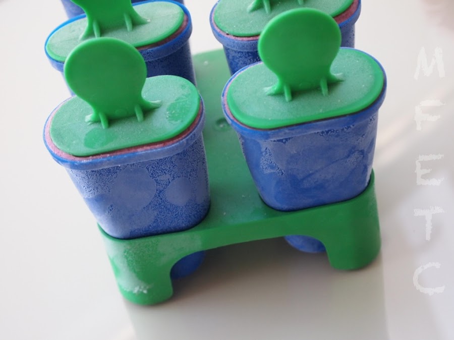 5. Llena los moldes para helados con esta preparación y déjalos congelar completamente un mínimo de 10 horas. Si lo pones todo en un molde grande o en un bol a congelar toma la precaución de batir el helado cada cierto tiempo mientras se congela para evitar la formación de cristales de hielo.