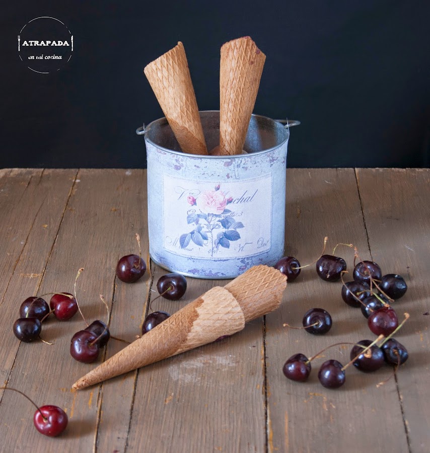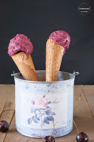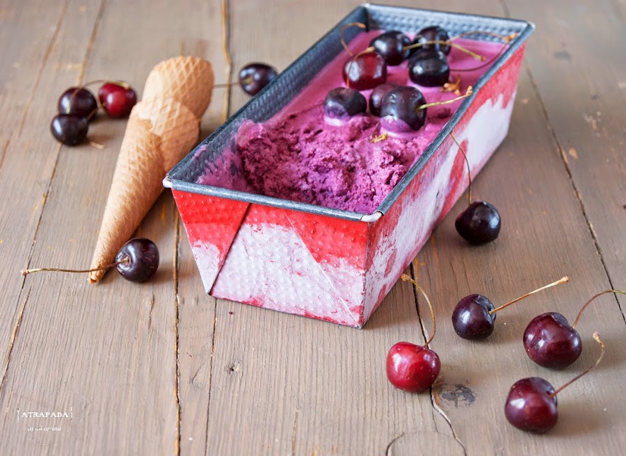 Estos últimos días están siendo muy calurosos, demasiado, así que hay que ir tirando de helados, y si además llevan una de las frutas del verano pues mejor aún. Las cerezas son una de mis frutas preferidas, aunque normalmente no preparo nada con ellas, debo de reconocer que prefiero la fruta tomada como tal más que en distintas elaboraciones, pero sí que es verdad que a los helados le va muy bien todo tipo de fruta. Esta receta que os traigo hoy es bastante sencilla, sin ningún ingrediente raro, y se la vi a Frabisa. El color de mi helado ha sido más oscuro, debido a la intensidad de color de la cereza en sí. Es un helado muy refrescante que os gustará a todos en casa. Ya veréis.