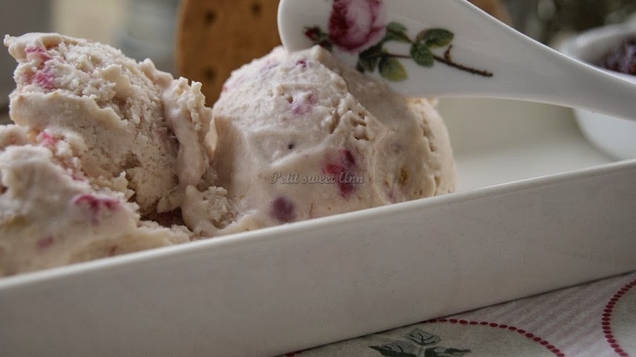 Yo he usado mermelada de fresa y frambuesas enteras, pero lo podéis hacer de lo que queráis, de caramelo, de arándanos, de manzana, de chocolate,......las combinaciones de este helado de cheesecake son infinitas jejeje