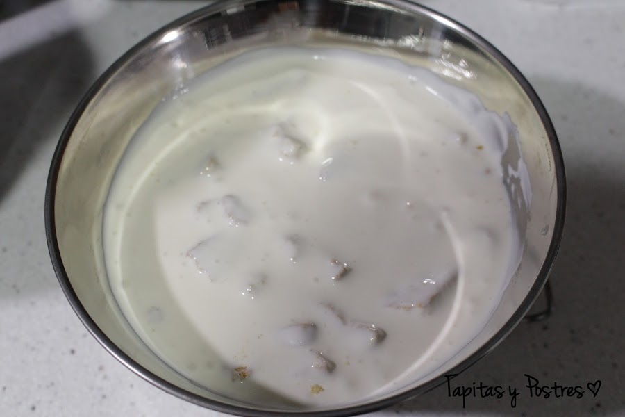 Vertemos la mezcla en un recipiente metálico, para que se enfríe antes y luego al congelador.