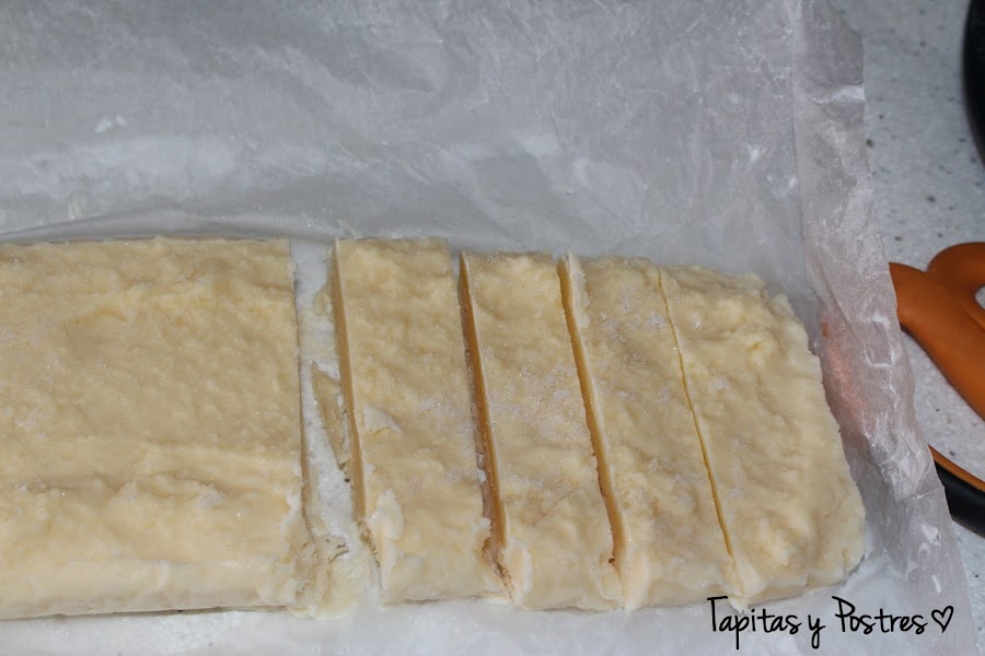 Y cortamos la crema congelado en trocitos.