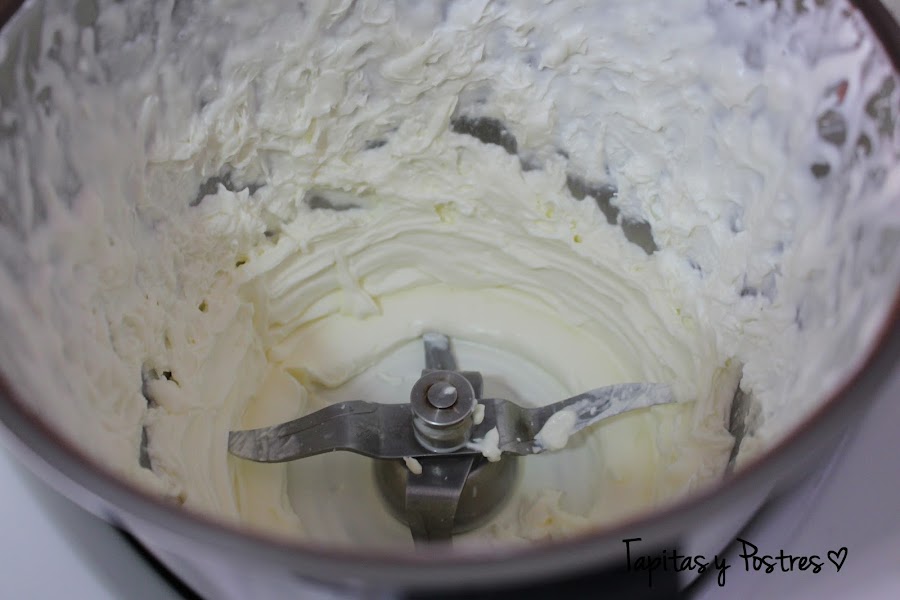 Si no tenemos thermomix lo que haremos es batir muy bien los ingredientes con una batidora (queso, huevos, azucar, vainilla) y a continuación lo ponemos en un cazo y lo calentamos a fuego medio, removiendo continuamente hasta que espese. Congelamos esta mezcla y ciando esté congelada, la sacamos y la hacemos cuadraditos. Con las varillas montamos la nata (crema de leche) y le añadimos la crema congelada. Ahora con la batidora trituramos esto muy bien hasta que quede cremoso. El resto, lo hacéis como os indico mas arriba.