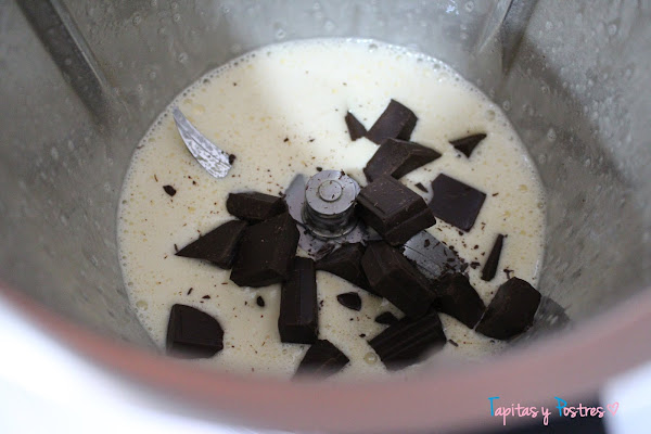 Agregamos el chocolate en trozos y trituramos 20 segundos a velocidad progresiva 1-6.
