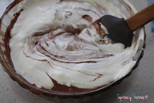 Y ya frío, mezclamos con la nata montada (crema de leche), con movimientos envolventes.