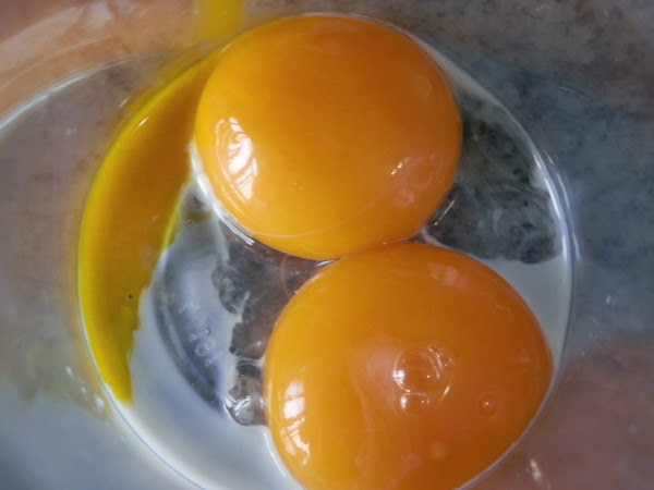 Cuando ya esté el cazo fuera del fuego por unos diez minutos más o menos, (cuando podamos poner un dedo en el cazo ¡por fuera! y queme un poquito, añadiremos la mezcla de las yemas con el azúcar ya batidas y daremos vueltas con una varilla, con cuidado que no cuajen las yemas.