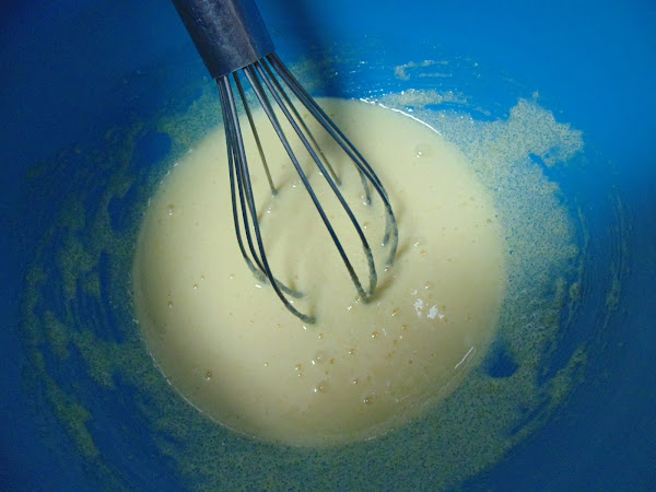 Luego agregamos la mezcla del azúcar y yemas y seguimos removiendo.