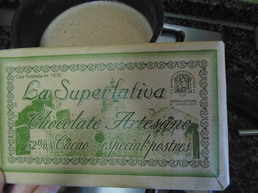 Una vez mezclado añadimos el chocolate troceado. Lo movemos hasta que esté todo bien disuelto.