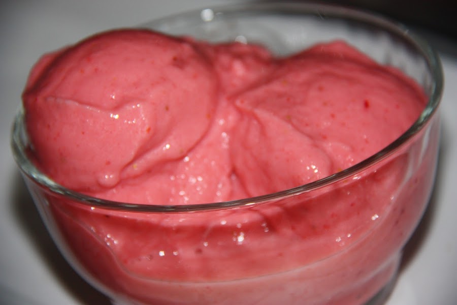 De repente me apetecía helado , pero ya no quedaba en el congelador... solo unas fresas congeladas, ¡ pues vamos con un helado instantáneo de yogurt !