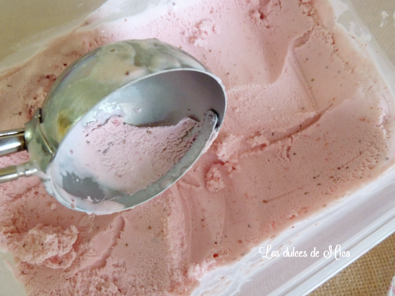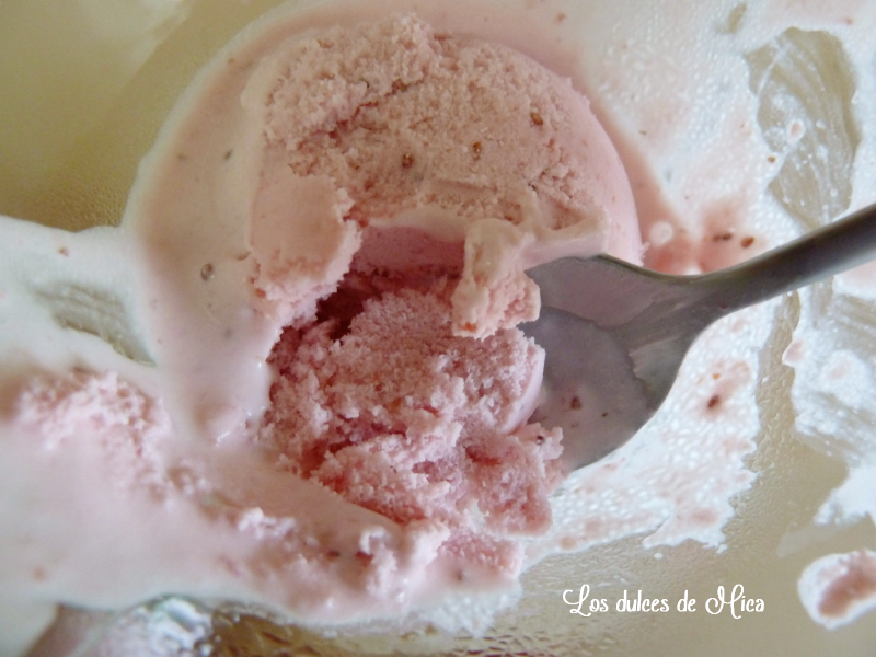 Tiempo de empezar a pensar en el verano que ya está a la vuelta de la esquina y tiempo de "desempolvar" esas heladeras, aunque la mía mucho polvo no tenía porque estuvo todo el invierno metida en el congelador preparada para este momento, así que doy por inaugurada oficialmente la temporada de helados y me estreno con un helado de fresas rico, rico.
