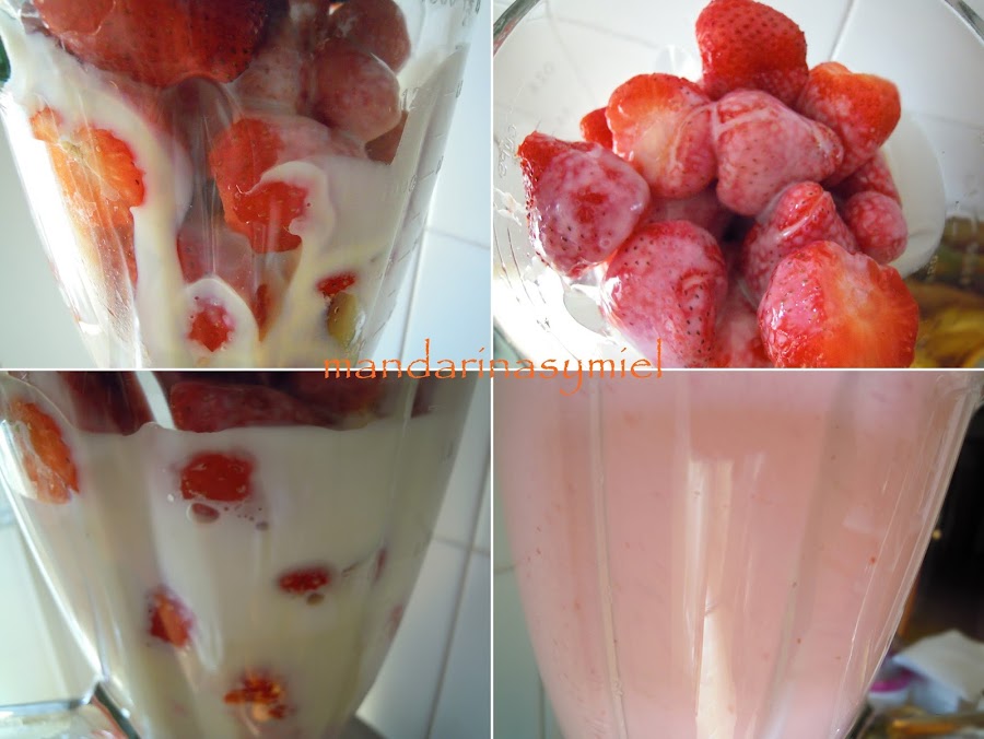 Casi todos los días por la tarde tarde, mi amiga Merche de Hogar y brasas y yo salimos a pasear por la playa, y el día que compré las fresas le comenté lo de hacer un helado pero que fuera sencillo porque tengo unos amigos que se han comprado la heladera y me han pedido que publique helados fáciles, sin cocina.......y ahí está Merche con sus buenas recetas y me dice que este helado solo lleva tres ingredientes, fresas, leche condensada y leche natural, decidido y hecho!!!