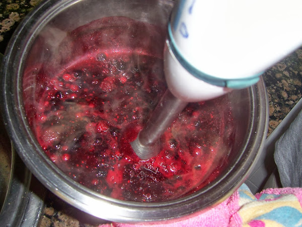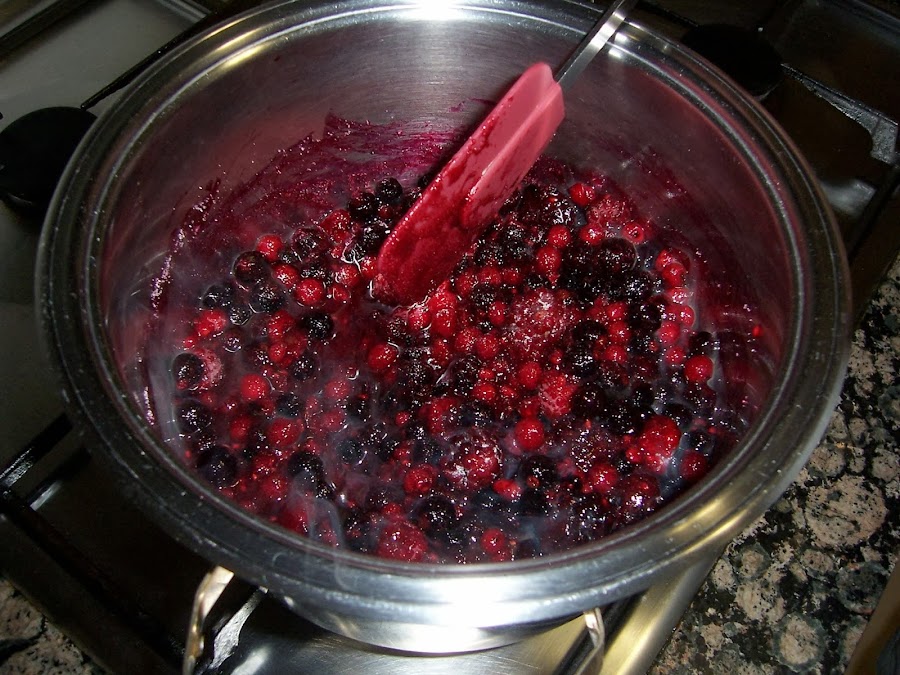 Ponemos la fruta con el azúcar a hervir unos 5 minutos y pasamos por la batidora y dejamos enfriar un poco.