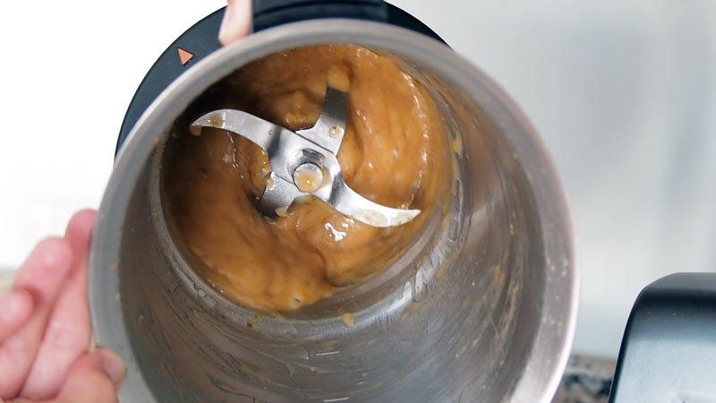 Vamos a necesitar dátiles con o sin hueso. Si tienen hueso los abrimos por la mitad y se los sacamos. Luego los ponemos en un recipiente y los cubrimos con agua. Los dejaremos sumergidos en el agua durante al menos 4 ó 6 horas para que se ablanden. Si es de un día para otro también está bien.Una vez que haya pasado el tiempo de remojo, los escurrimos y reservamos unos 50 ml de este agua. Añadimos los dátiles al vaso de la batidora o robot, añadimos el agua que hemos reservado y lo trituramos hasta obtener una pasta tipo caramelo.