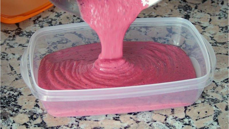 También podemos poner unos cuantos frutos rojos enteros o troceados dentro para encontrarlos después al comerlos.