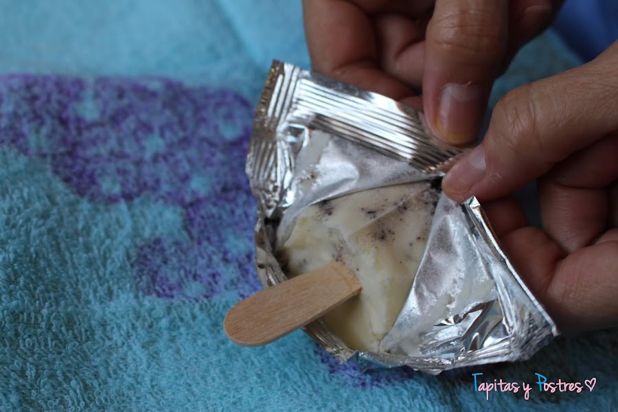 Hacemos esto con los otros paquetes. Yo solo he preparado tres helados, si queremos más, dobláis cantidades,