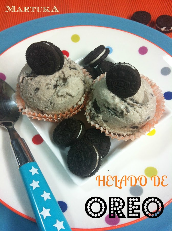 galletas OREO mini para decorarSi se hace en heladera: se bate en un vaso de batidora la leche, la nata (crema de leche) y la miel. Se deja enfriar en la nevera. Cuando esté muy fría la mezcla se añade por el bocal de la heladera muy fría y se pone a mantecar 15 minutos. Se añaden las galletas OREO desmenuzadas y se sigue mantecando otros 15 minutos.