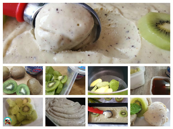 Helado de kiwi con yogurt, elaboración:1.- Pelamos la fruta, la cortamos en trozos y la guardamos en el congelador en un bolsa de para congelar comida o un táper bien cerrado, durante 5 o 6 horas.