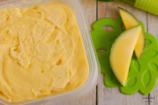 El final del verano es el momento propicio para que los principales frutos de la Costa Tropical estén en su momento. Eso pasa con los mangos, que desde hace unas semanas ya podemos encontrarlos en los comercios, mucho mejores que los importados de otros países. No suelo comprar mangos, ya sabéis que no es mi fruta preferida, pero son muchas las elaboraciones que ya tengo publicadas en el blog y todas muy interesantes. Los que usé para el helado me los regalaron y ya he preparado unos cuantos botes de mermelada, así como éste helado. Y todavía me quedan unos cuantos que usaré para elaboraciones saladas. La receta del helado la vi en Art-Arte, y ha resultado un helado bastante refrescante y es ideal para sofocar estos calores de este final del verano tan atípico.