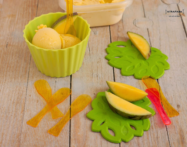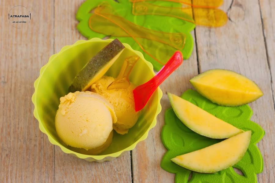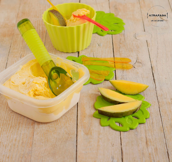 Buenos, pues adelanto que no va a ser el último helado de la temporada, ahora estamos viviendo los días más calurosos de este verano, pese a estar ya en septiembre, por lo que seguimos con cocina veraniega, aprovechando ingredientes ya casi del otoño, como éstos deliciosos mangos de la Costa Tropical.