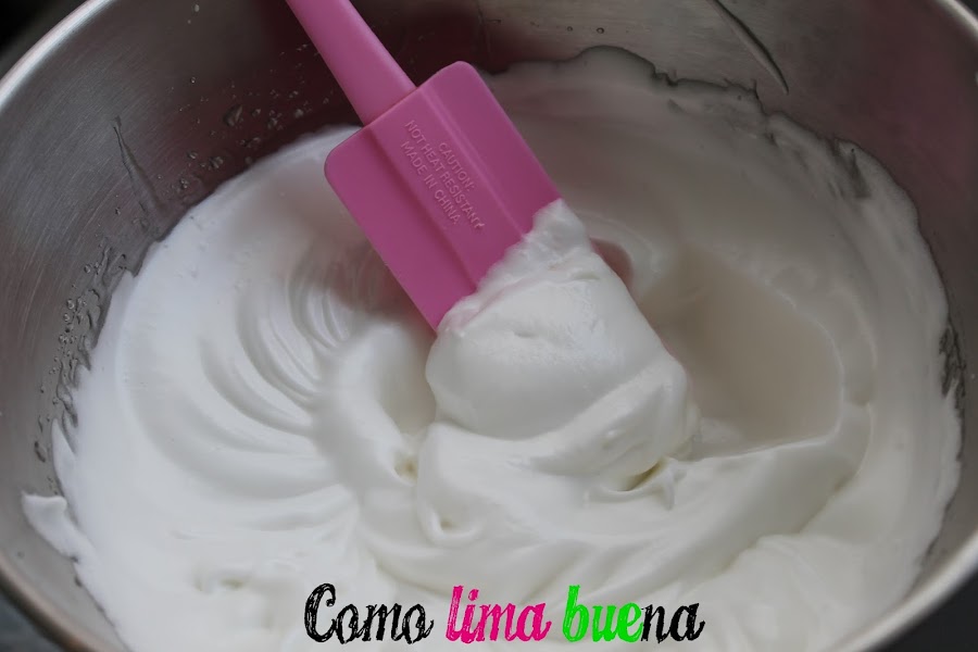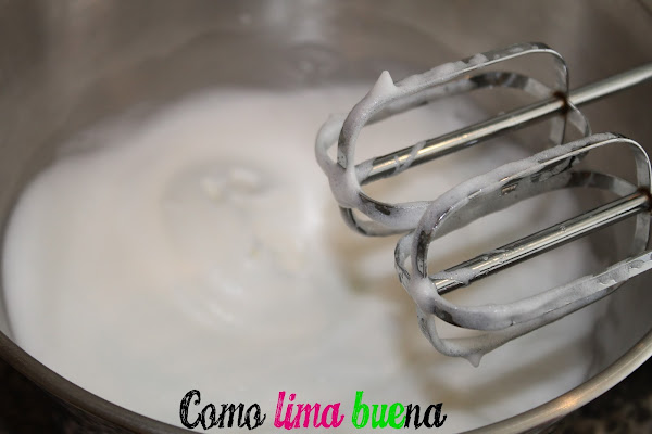 Incorporar el almíbar en forma de hilo y seguir batiendo hasta formar un merengue.