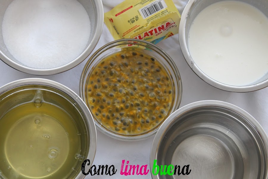 Pulpa de maracuyá 200 gr (casi una taza. Según el tamaño de la fruta pueden llegar a ser 2 o 3 maracuyás)