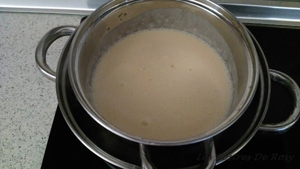 Cocinamos esta mezcla "al baño maría" hasta que espese. Dejamos que se enfrie y llevamos a la nevera.