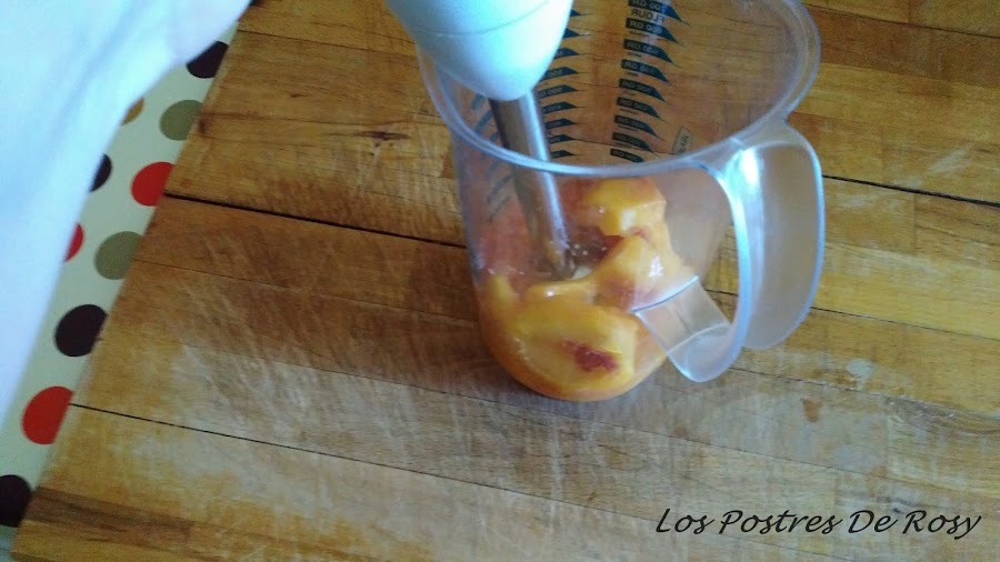 (*) Si utilizáis el melocotón en almíbar, contad con que ya será demasiado dulce, así que si no queréis que quede demasiado dulce y empalagoso, no pongáis azúcar.
