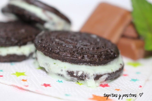 Y aquí me preparé unos mini sandwich quitando la crema a las galletas y rellenándolas de helado.