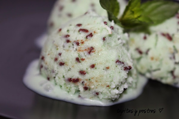 No es este uno de los helados que yo hubiera preparado de forma voluntaria, pero Macarena, la hija de mi amiga Mª Angeles, lo pide siempre que va a una heladería y he pensado que quizá saliera bien en casa.
