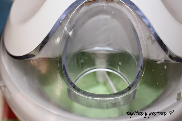 Dejamos que la mezcla se enfríe en la nevera unas horas antes de meterlo en la heladera. Si no usáis la heladera, lo podeis poner en un táper y al congelador.