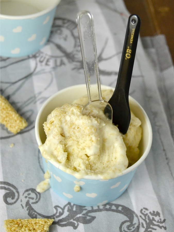Cómo me esta gustando esto de hacer helados, en cuanto le coges el truco ¡Se pueden hacer de cualquier sabor! Además aunque parezca que son laboriosos lo bueno que tienen es que se puede hacer un día la crema y otro día la parte del mantecado(o helado) ¡Solo hace falta organizarse un poco!Y dicho todo esto ¡vamos con la receta del helado de hoy! No se porque pero me encanta intentar preparar helado diferentes o que sean menos conocidos. En este caso he intentado reproducir, con bastante buen resultado, el primer helado que me comí el año pasado en Venecia ¡Qué recuerdos! Miel y sésamo, una combinación genial y que recuerda bastante a la repostería árabe.