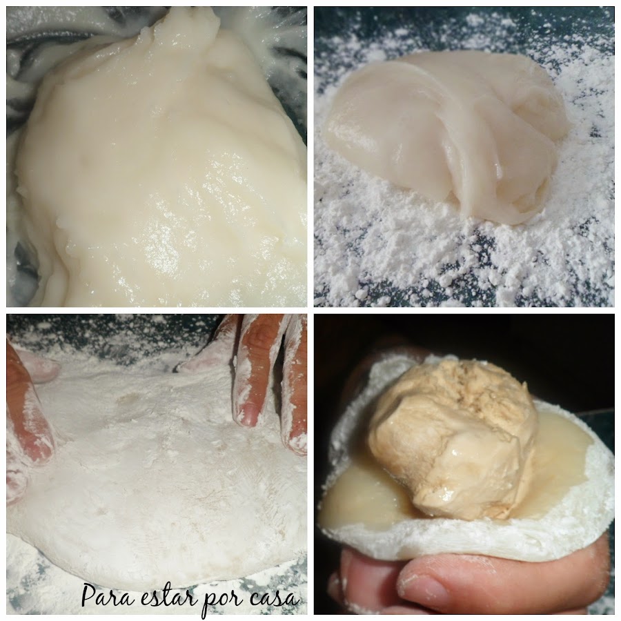 En realidad la idea ha sido nuevamente de mi chico al que le chifla casi todo lo relacionado con este país y que ya se había atrevido anteriormente a probar otros tipos de mochi y le habían quedado muy ricos.