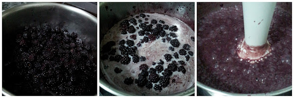 En una cacerola añadimos las moras lavadas junto con los 30 ml de agua y lo dejamos cocer durante 10 minutos.