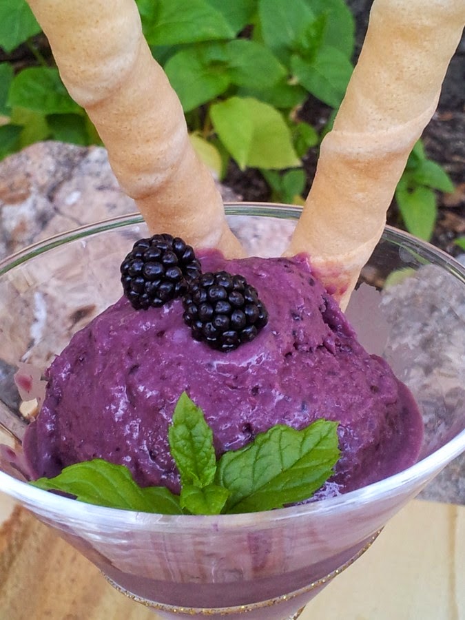 Siempre que llega estas fechas en que las moras hacen su aparición me voy a recogerlas para preparar mi mermelada de moras, pero cual ha sido mi sorpresa que las zarzamoras están muy secas y sus frutos muy pequeños, apenas he recogido algunas que merecieran la pena, así que este año me he decidido por preparar este delicioso helado de moras. Todavía podemos aprovechar los días de calor para saborear este delicioso helado ¿ os animáis?