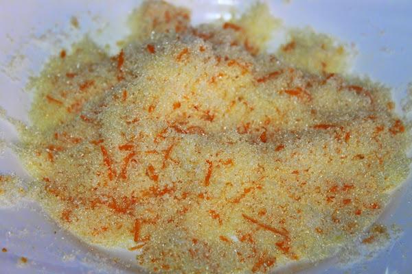 - 100 ml de lecheLavamos bien la piel de la naranja y la rallamos. Se la añadimos al azúcar y la mezclamos bien para que tome el olor y sabor de la piel de naranja. La reservamos.