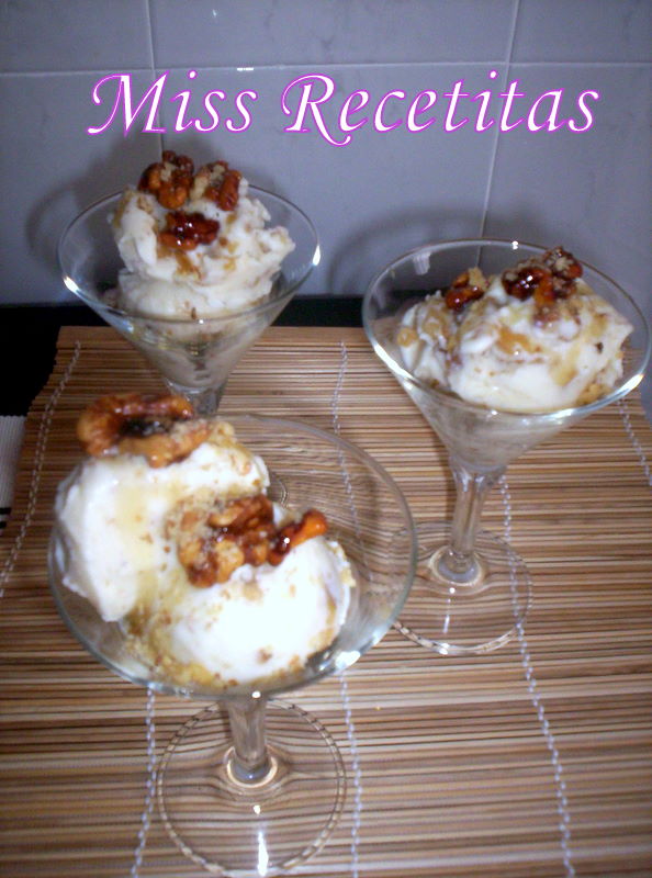 Bueno... este helado lo tenia pendiente desde que me compre la heladera. Tengo una amiga que le pirra el helado de nata (crema de leche) con nueces y hace un par de semanas me trajo una bolsa de nueces... indirecta?? o mas bien directa?? jajajaja asi que hoy me he puesto a prepararlo.