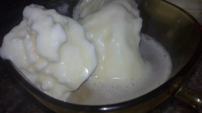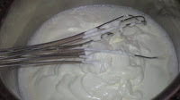 Monta la nata (crema de leche) pero dejala a medio montar. Este es un consejo de Recetario spanglish para mis hijos, tiene unas recetas de helados muy buenas y faciles, sin ingredientes complicados a encontrar, sin heladera... en fin hay que ver sus recetas.