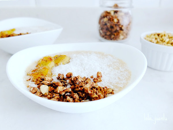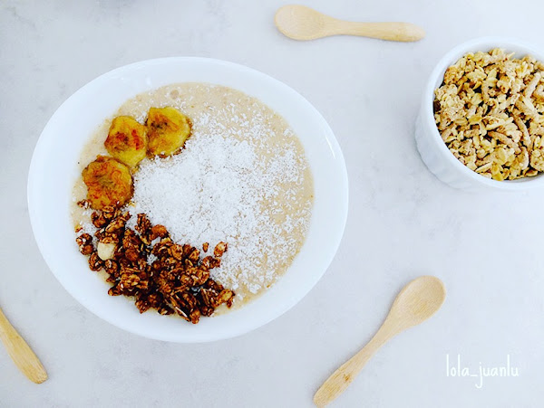 Cada cucharada es una sorpresa, puede ser dulce con el coco, salada si lleva las escamas de sal, crujiente si coges granola con frutos secos y caramelizado si lleva plátano frito.