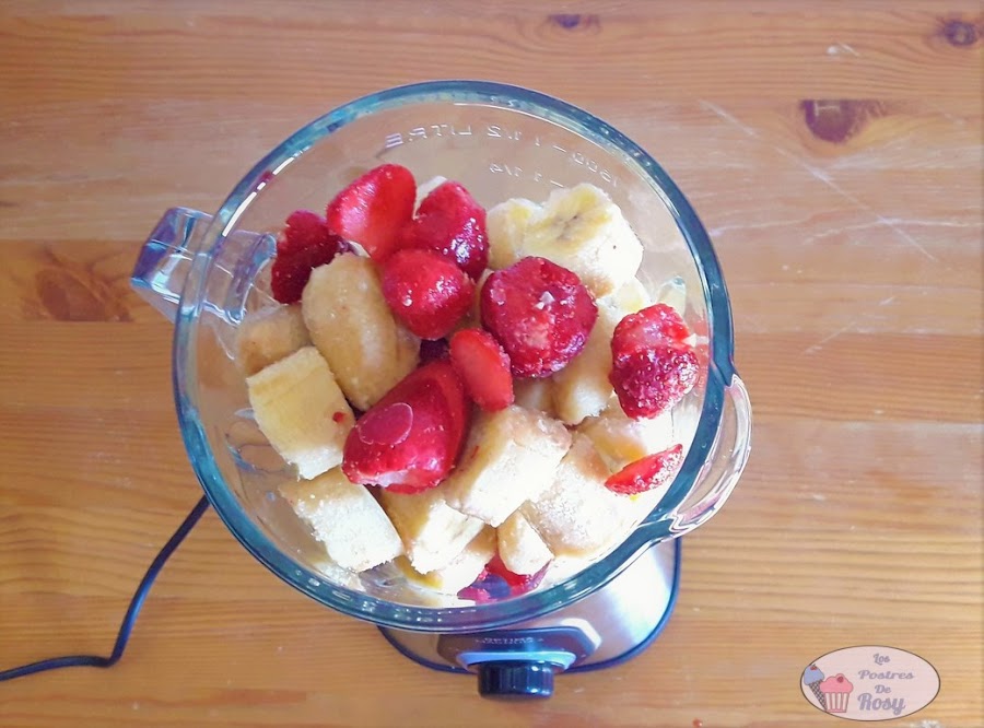 En definitiva, que hoy os traigo una nueva receta, y esta vez es un heladito, ¿os apetece, verdad?, pues al lío que hoy vamos a elaborar un HELADO DE PLÁTANO Y FRESA sano, sanote, SIN LACTOSA, SIN AZÚCAR, SIN HUEVO Y SIN GLÚTEN preparado SIN HELADERA y apto para (casi) todos los paladares, pues es VEGANO.... Así que sin más demora ¡COMENZAMOS!